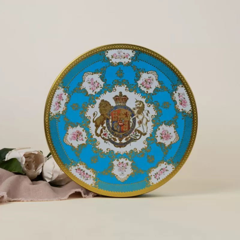 This Wonderful Biscuit Tin Is Inspired By A Beautiful Hand Painted Plate Found In The Royal China Pantry, Buckingham Palace, Featuring The Coat Of Arms Of King George Iv And King William Iv Surrounded With Blush Pink English Roses.