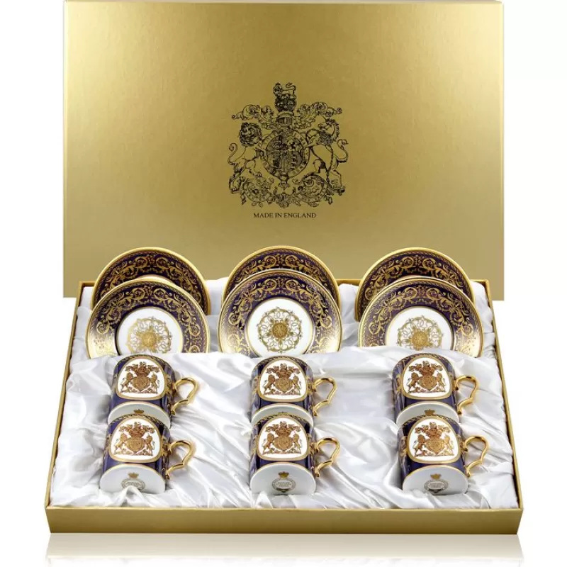 The Set Consists Of Six Cups And Saucers And All Are Made By Hand In Stoke-On-Trent, In England Using Fine Bone English China. Every Piece Is Wonderfully Finished With A 22 Carat Gold Design.