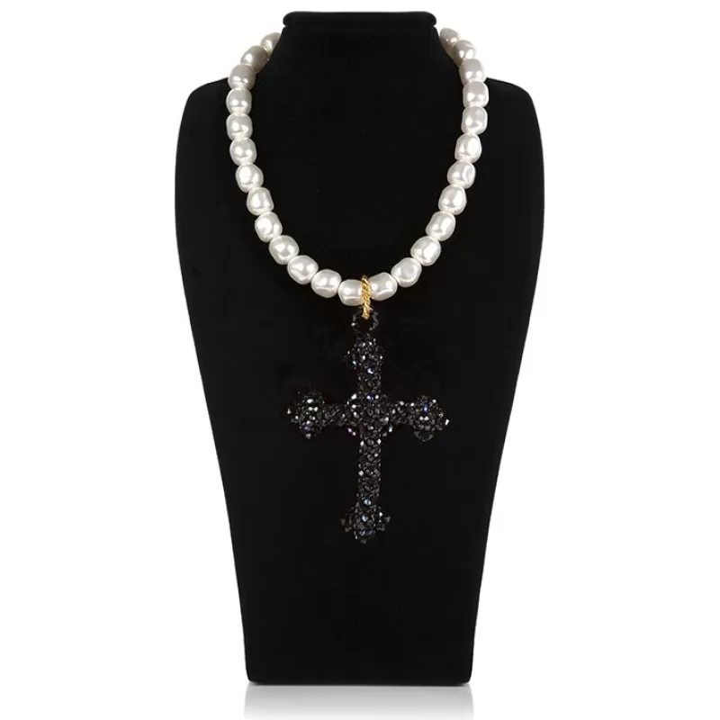 This Necklace Is Made With Magnificent Pearls And The Cross Is Formed Of A Mixture Of Resin And Glass Beads.